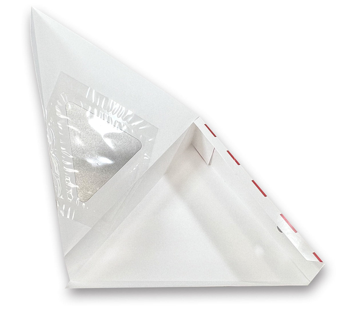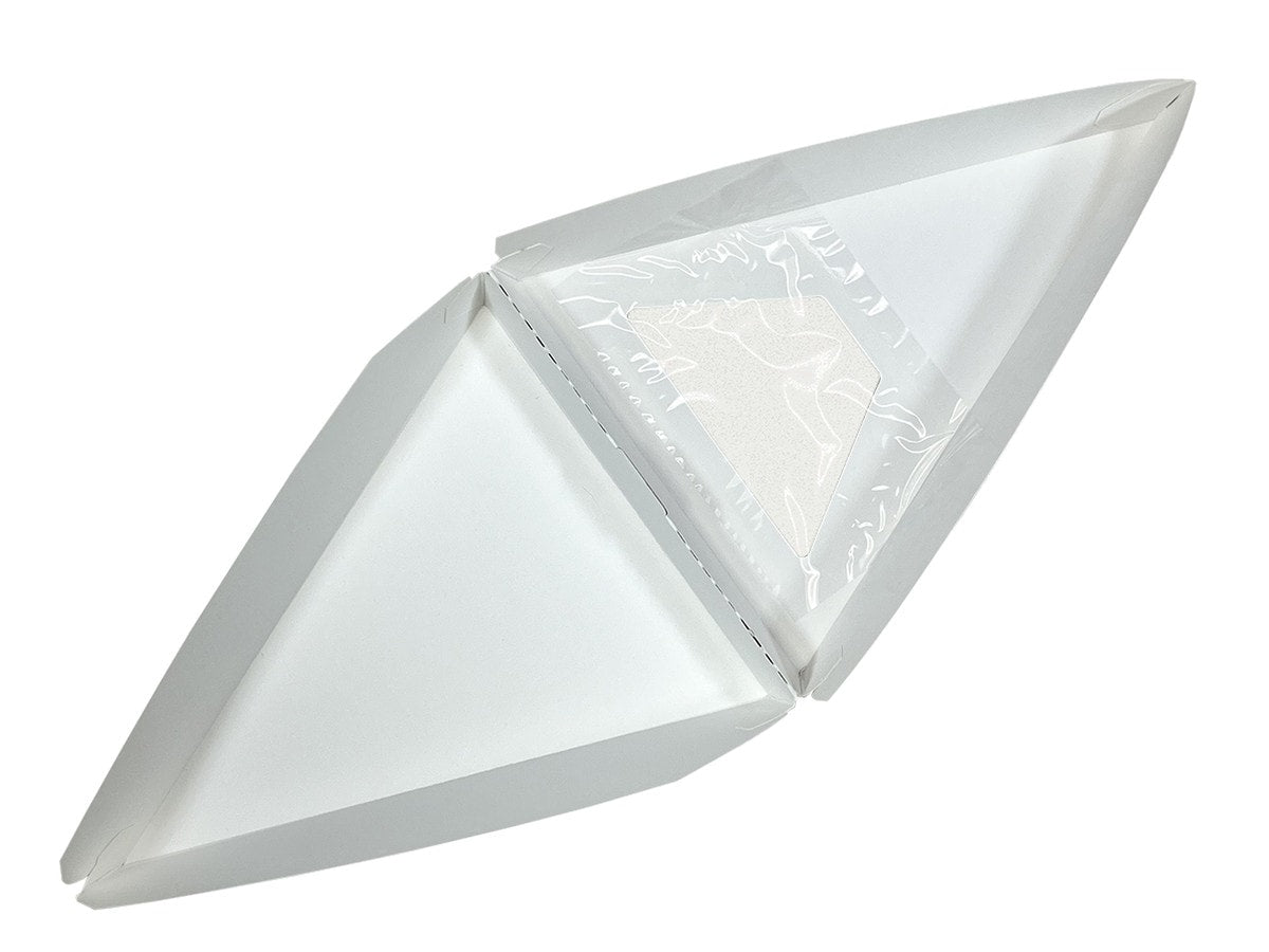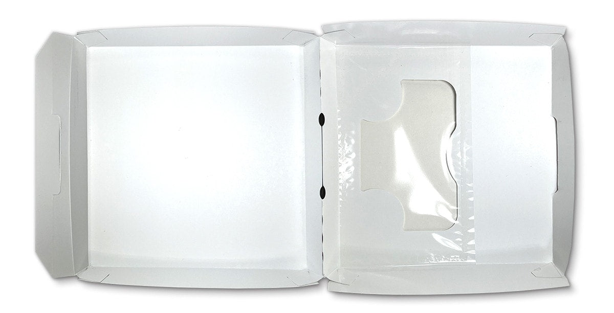 Clamshell style pizza package with a transparent window and beautiful 4 color print to keep curious people satisfied. Poly-lined to minimize moister transfer.