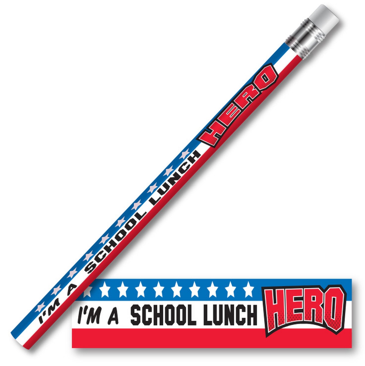 Fun pencil with #2 lead and rubber eraser. Packed 100 per case. For ages 3+. (Pencils do not come sharpened)